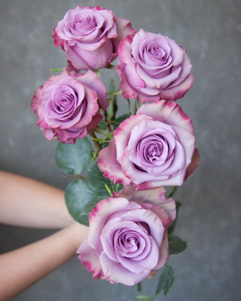 The Govinda rose is a refined and romantic variety, known for its rich lavender center that softly fades into mauve-hued edges. Its delicate color gradient gives it an ethereal, almost vintage charm, making it a perfect choice for elegant arrangements and high-end floral designs.
