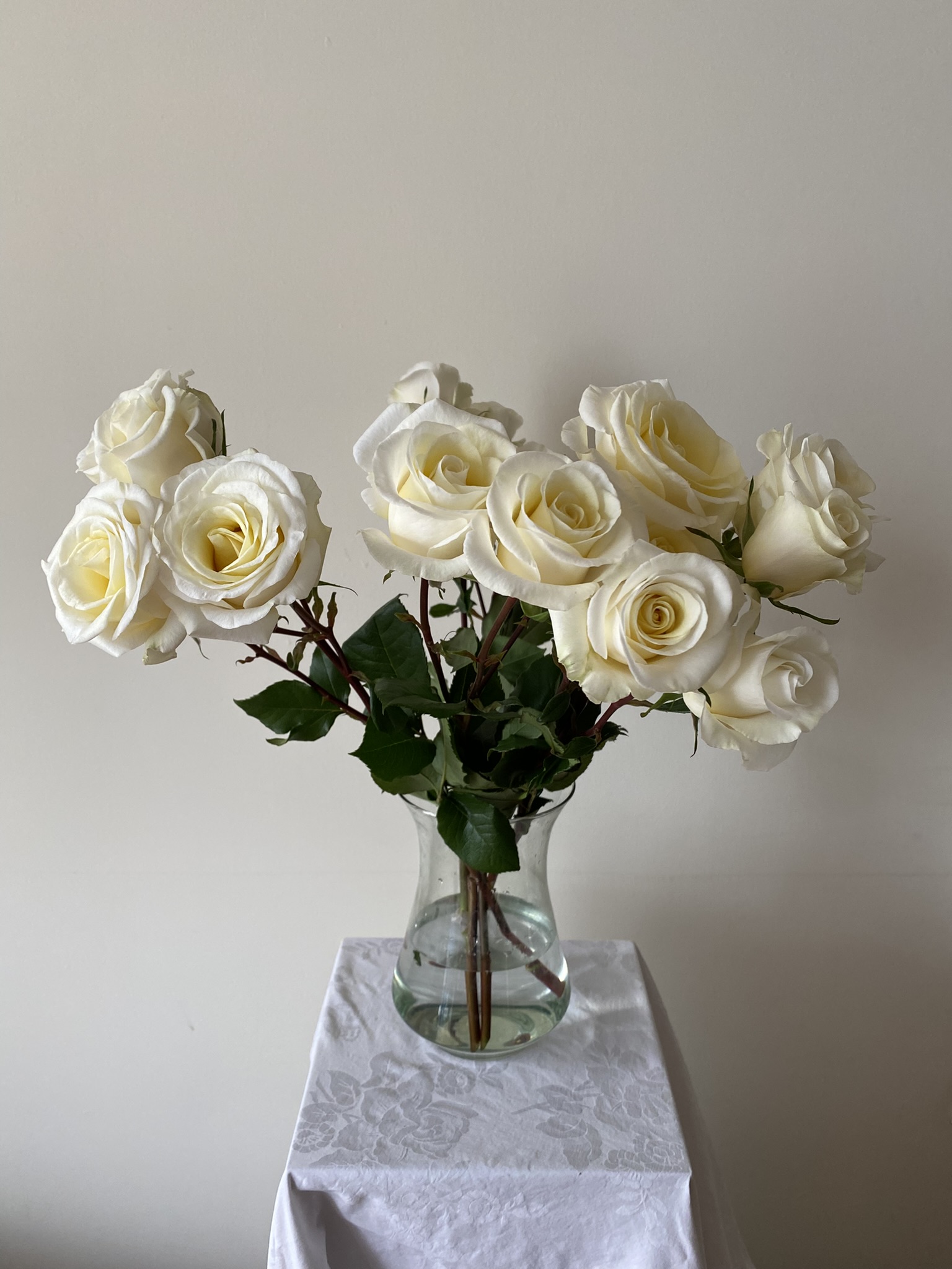 Shape: Multiple small to medium-sized blooms per stem, each with a classic rounded form and layered petals.